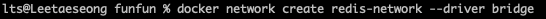 그 다음, 'docker network create redis-network --driver bridge' 명령어를 사용하여 네트워크를 생성해 준다.