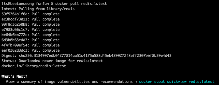 'docker pull redis:latest' 명령어를 사용하여 최신버전의 redis를 받아온다.